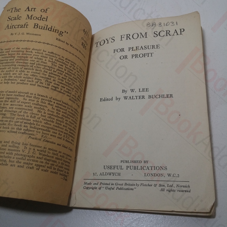 A step by step guide to making a range of toys and models, with notes on pricing home-made toys, market appreciation and materials to use. Dating from the mid-1940s, this little booklet is sadly battered but still completely useable and readable and full of instructions to make your own toys, many of which would now be considered vintage or old-school.