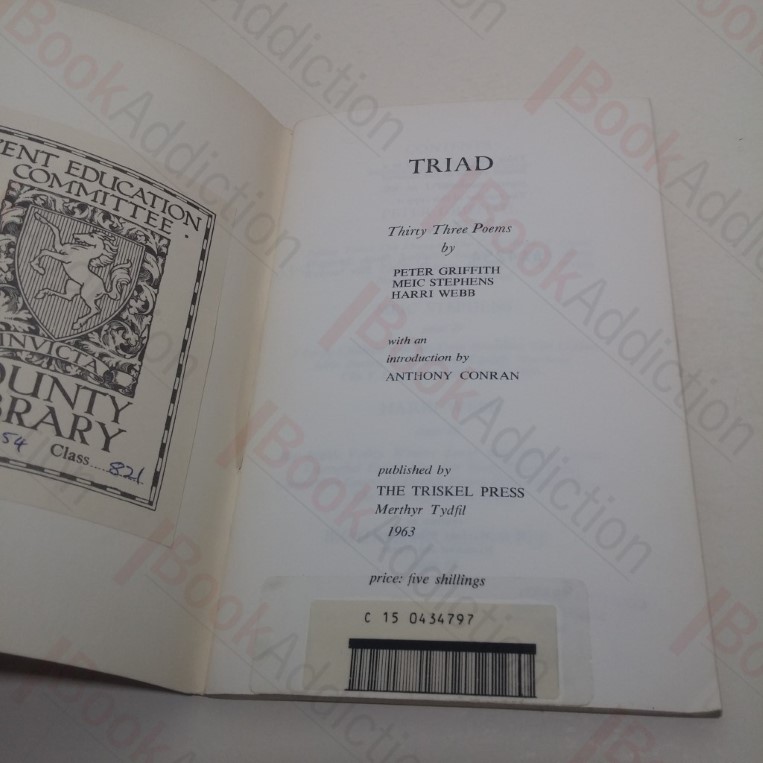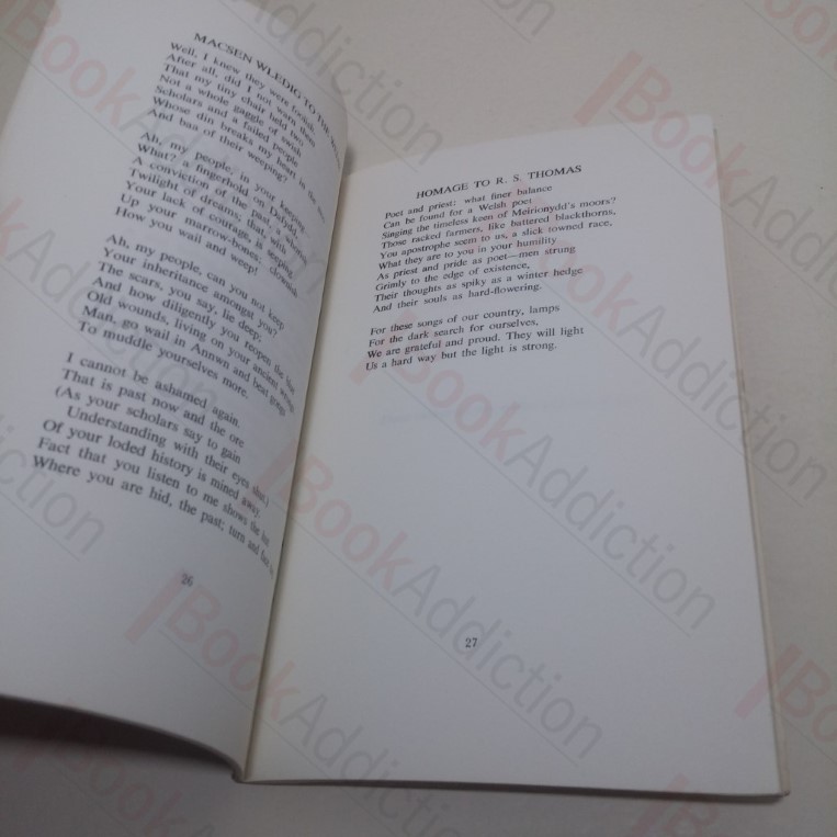 No. 250 of an edition limited to 500 copies. 58pp. Light card covers, stapled. 8vo. Shelf wear and chipping to edge, bottom corners curling; tanned rear cover, ring stain. Top text block edge just starting to fox and has a remainder mark. Inside rear cover foxed. Lending library markings inside covers, on title page and verso and last blank page. Otherwise, internally neat, clean, bright and tight. Introduction by Anthony Conran.