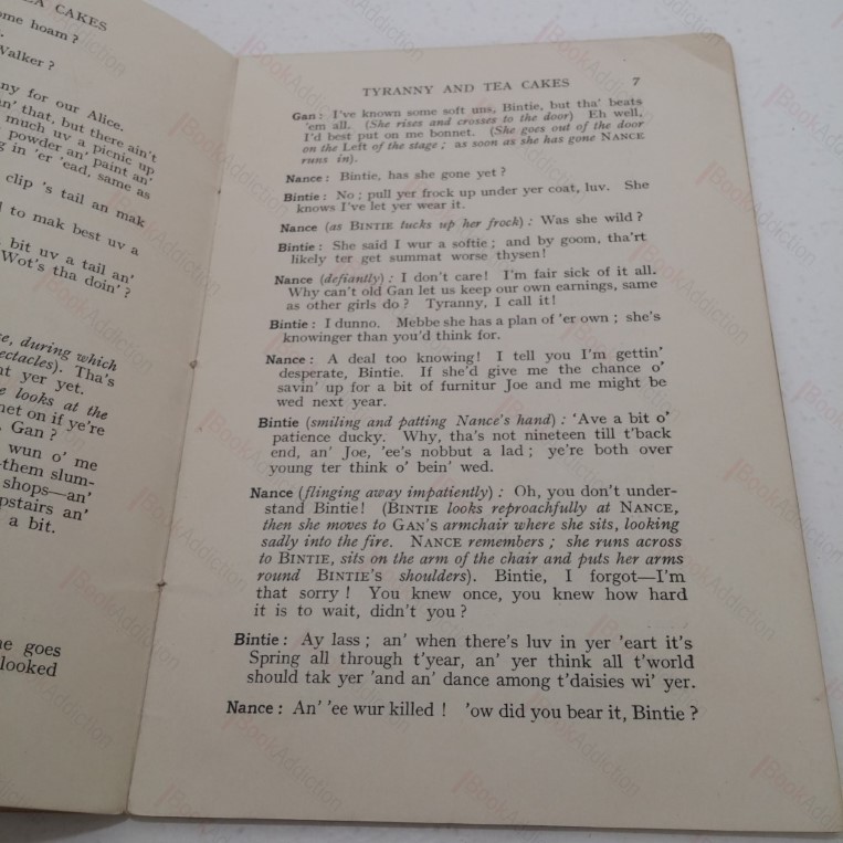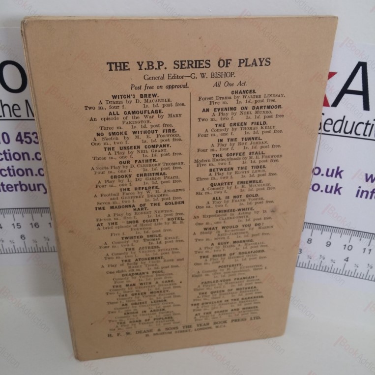 20pp. Stitched booklet in printed card wrappers (just a little worn and coloured). Some rubbing at corners, small mark on page 16. Previous owner’s name on the title page. Part of the Village Drama Society Plays series, a comedy in one act. Set in Yorkshire with the dialogue written in local dialect. Popular when first released in the 1930s, this is now a very hard to find title.