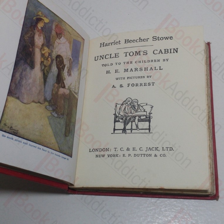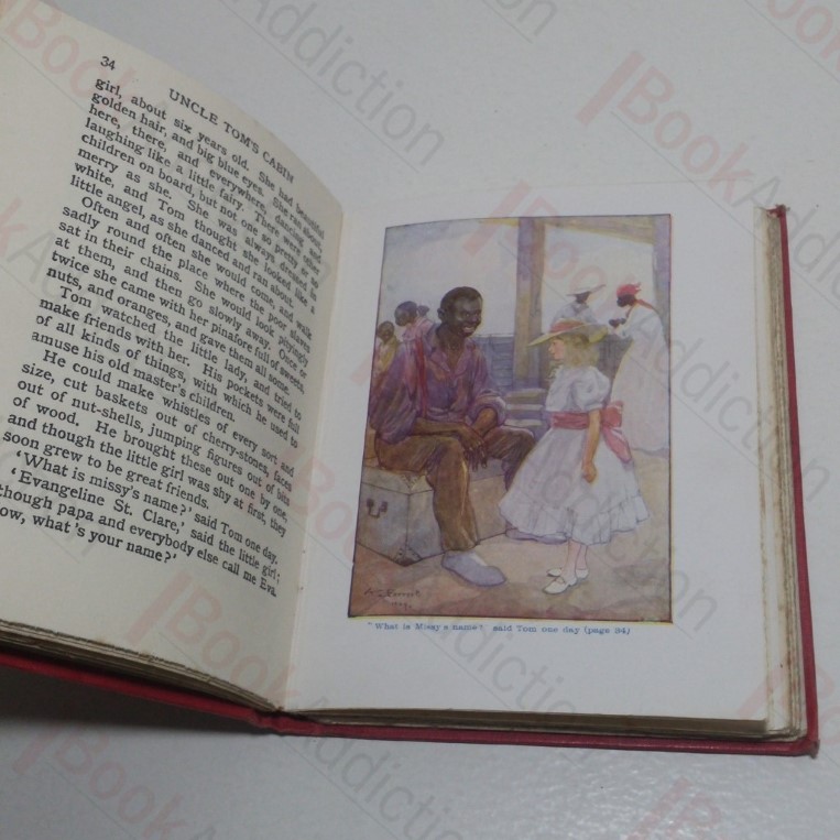 116pp. Red cloth-covered boards with deckled fore- and lower text block edges. Colour plate frontispiece and seven further colour plate illustrations. 16mo. Corners and spine ends lightly bumped and rounded, light foxing to the top text block edge. Previous owner’s name in pen on the front pastedown endpaper but otherwise internally clean, neat, bright and tight. Story about slavery adapted for children from original by Harriet Beecher Stowe with some illustrations throughout.