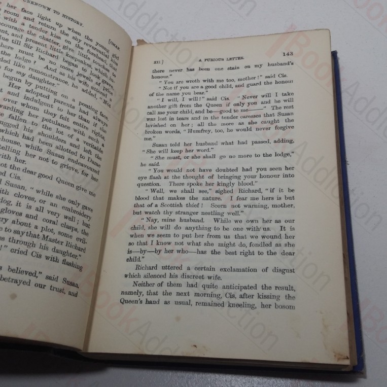 xvi, 590pp, [4]pp publisher’s ads. Blue cloth-covered boards; gilt design on front, gilt titles on spine. 12mo. Sun-faded spine, rubbed joints, corners and spine ends with cloth wearing, boards cupped. Text block edges tanning. Free endpapers tanning; top edge of some pages previously uncut, poorly released in places (not affecting text block); volume quite loose. Otherwise internally neat, clean and bright.