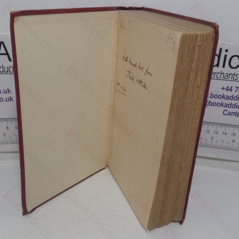 First edition, first impression. 250, 8pp. Red cloth covered boards, upper panel framed with blind rules, gilt lettering on spine. 8vo. Cloth worn, bumped on lower leading corner, gently rubbed and rounded at other corners and end of a lightly sunned spine. Text block edges shadowing. Some faint and occasional spotting on endpapers and first and last few leaves. Gift inscription, dated 1920, neatly inked on front free endpaper.