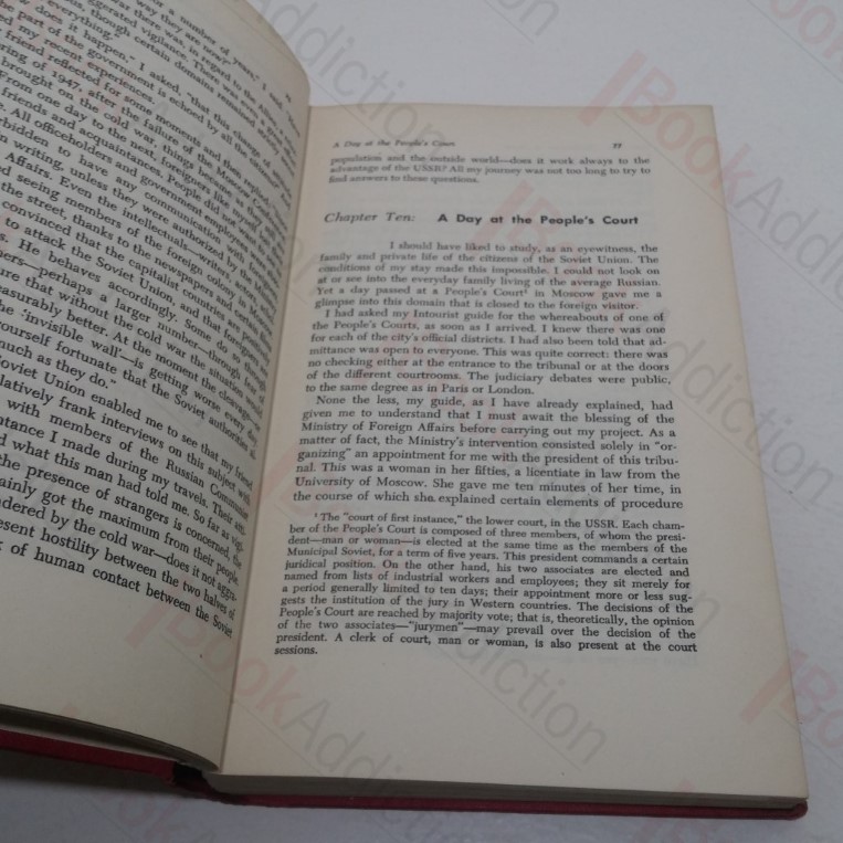 First edition, second printing. 420pp. Dark red boards with blind embossed titles on spine. Corners lightly rubbed and rounded, spine ends more heavily rubbed with some chipping around the hinges, spine sun-faded. soiling. Volume quite cocked. Text block edges have some small stains, tanned and just starting to fox. City and date on front free endpaper. but otherwise internally neat, clean, bright and tight. On the author’s personal experiences of Soviet life and Soviet mentality at over the course of 63 days mid 20th century. Translated from the French by Katherine Woods.