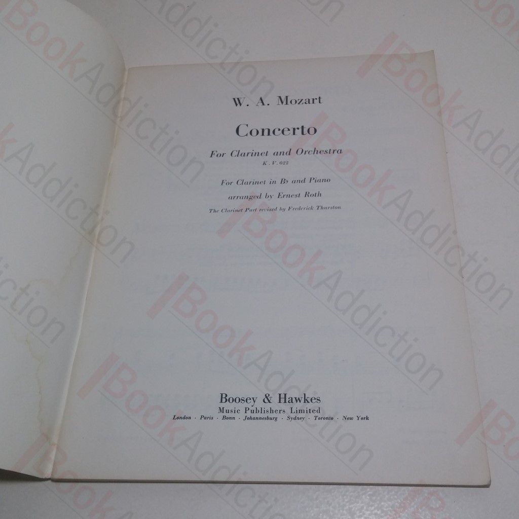 W A Mozart Concerto For Clarinet and Orchestra: For Clarinet in B Flat and Piano