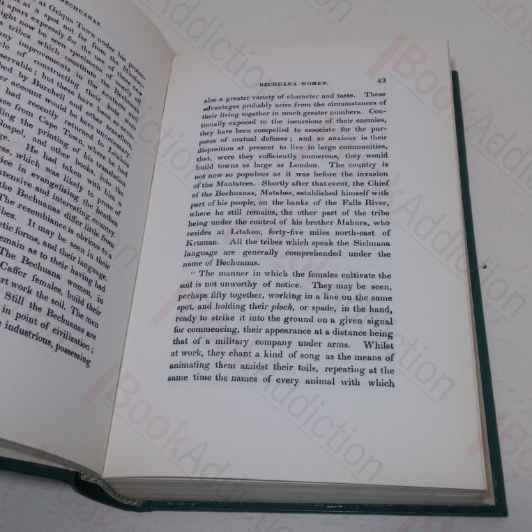 Volume 2 only. vi, 374pp, 6 black and white plates (inc. frontispiece), numerous black and white lithographs and wood engravings. Green faux leather-covered boards, gilt titles to spine, gilt publisher’s logo to front. 8vo. Text block edges lightly foxed. Endpapers lightly tanned and foxed. Internally a very neat, clean, bright and tight volume. Dust jacket sun-faded, chipping along edges, tear to front resulting in loss of top corner. An account of the author’s ‘Wanderings’ in South Africa, his success in obtaining an extensive collection of its production in Natural History, among which were several new undescribed animals and his adventures in the Interior. No. 404 of a limited edition of 750 numbered copies. Africana Collectanea Series Vol. XVIII.