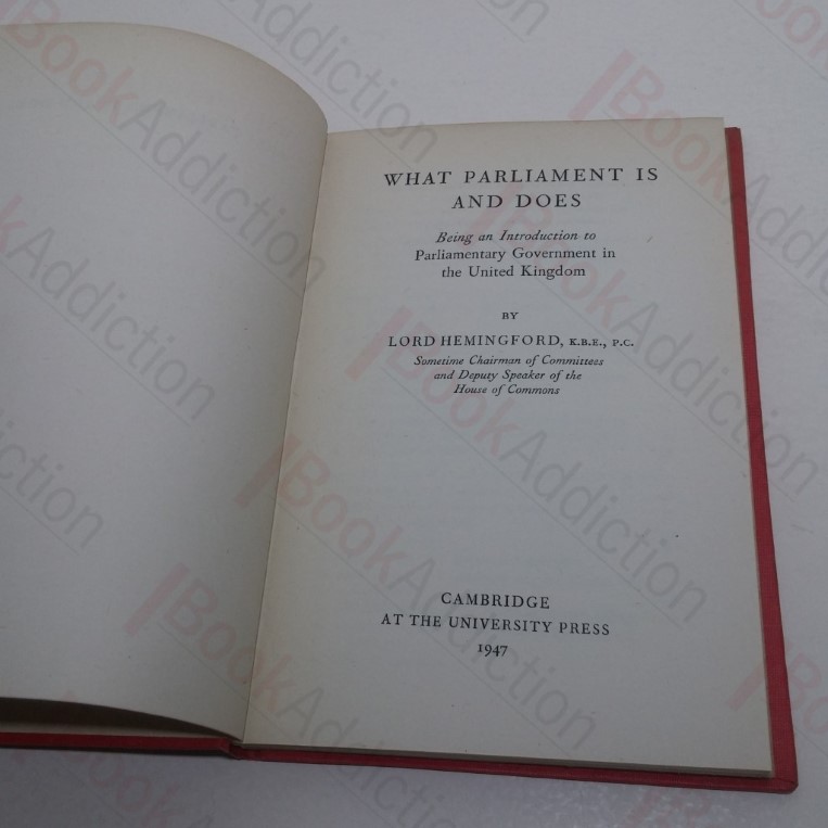 What Parliament Is and Does, Being an Introduction to Parliamentary Government in the United Kingdom