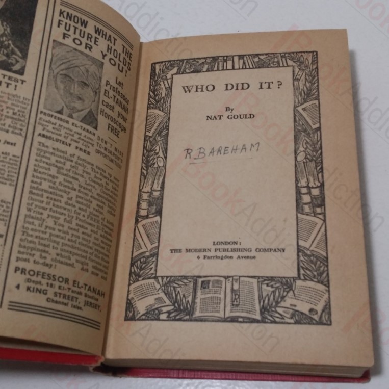 Undated (circa 1930s). 254pp. Red cloth-covered boards; black titles on spine. 12mo. Sun-faded spine, bumped spine heel, cloth rubbing. Text block edges tanned. Adverts on endpapers. Page margins tanned. Internally neat, clean and tight.