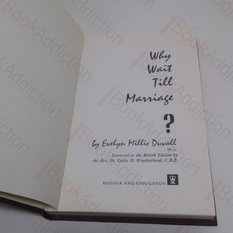 First UK edition. 128pp. In maroon cloth-covered boards with gilt titles on spine. Very gently rubbed on corners. A little dotted on text block edges. Internally neat, clean, bright and tight. In its original dust jacket, a little discoloured and gently bumped at edges. Discourse and guidance on sexual interaction prior to marriage, largely aimed at young people themselves, but also useful for parents and those from whom young people seek guidance on such matters.