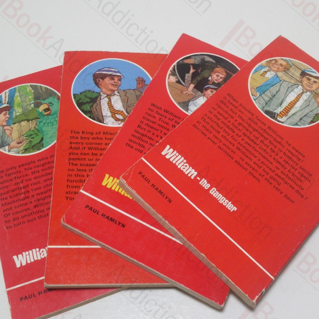 A collection of four Just William paperbacks, all published by Paul Hamlyn, all 12mo. (1) William the Rebel (1967) – Covers a little rubbed at edges, else neat, clean, bright and tight throughout. (2) William and the Moon Rocket (1968) – Covers a little rubbed at edges, reading crease, else neat, clean, bright and tight throughout. (3) William the Gangster (1968) – Covers a little rubbed on corners and spine tips, original price obliterating in pen, replaced with 1/-. (4) William and the Space Animal (1968) – Covers a little rubbed at edges and perhaps a tad faded, single short flat crease on verso, internally neat, clean, bright and tight.