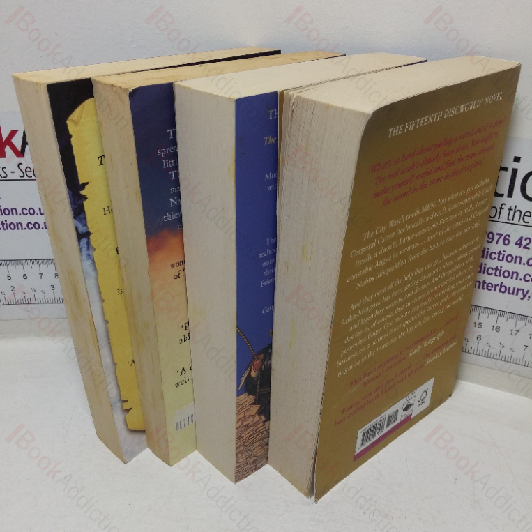 A collection of four Terry Pratchett Discworld softcovers. Uniformly bound in glossy, illustrated stiff card covers. 8vo. Each of the volumes has some very gentle edge wear to the card covers; Wintersmith and The Wee Free Men have mild reading creases along the spine and a little toning to text block edges, else volumes are neat, clean, bright and tight throughout. With covers and occasional illustrations by Paul Kidby.